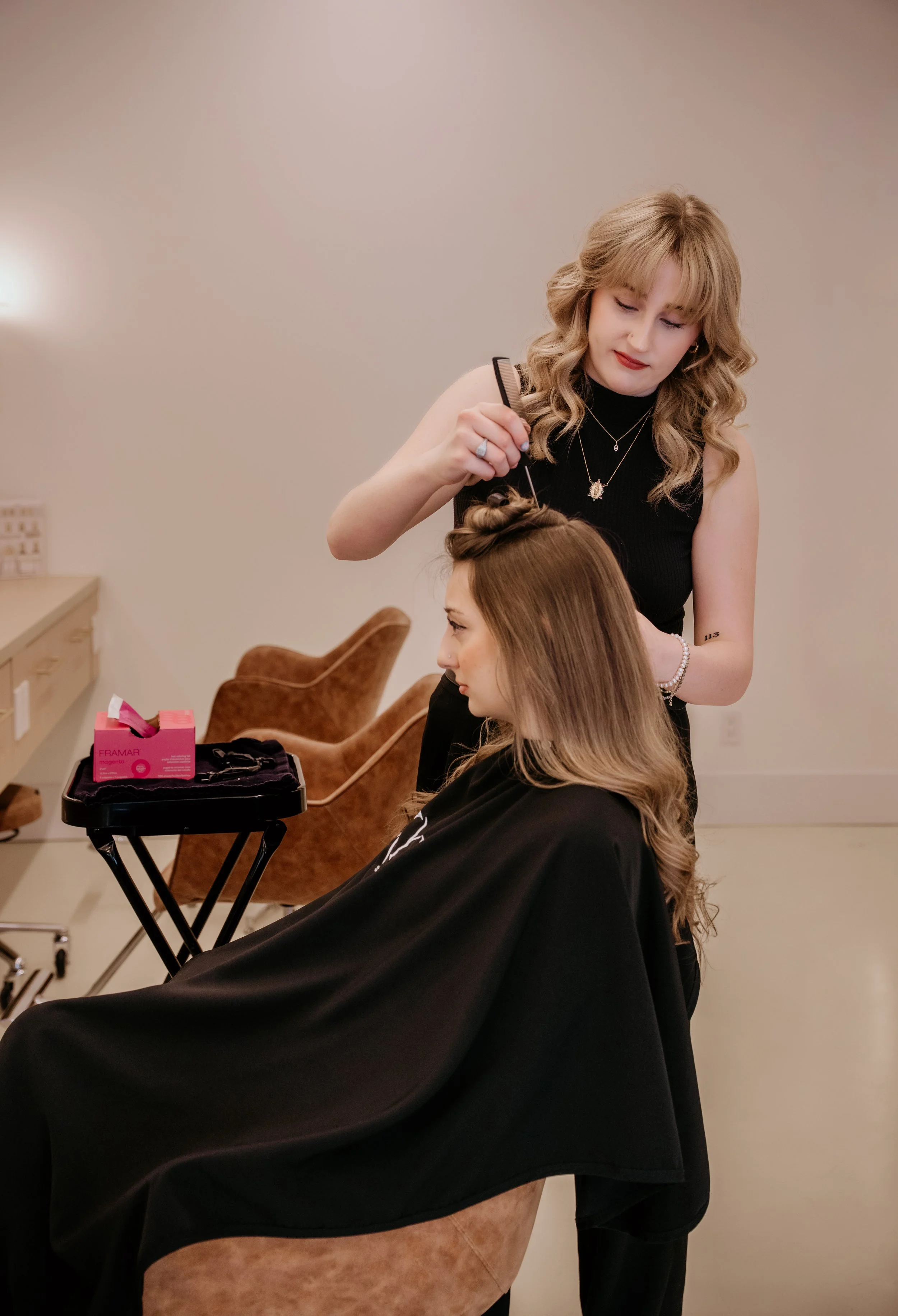 An established salon, reimagined in a refined new space. Experience elevated, modern hair in an environment designed with warmth, intention, and quiet luxury.